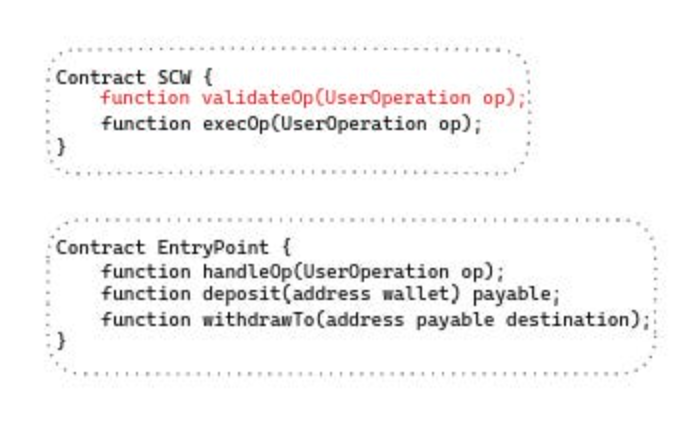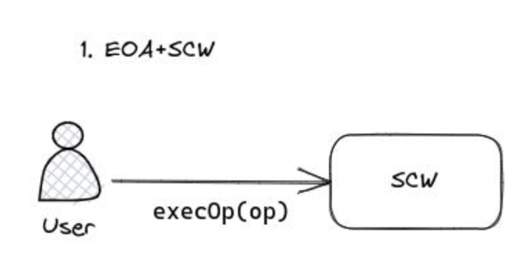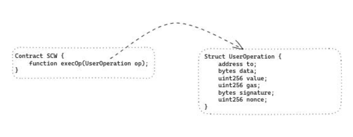 An SCW contract needs to implement the processing of an op sent by an EOA. execOp is a contract call, so for the UserOperation design we need to keep all the parameters in eth_sendTransaction.
