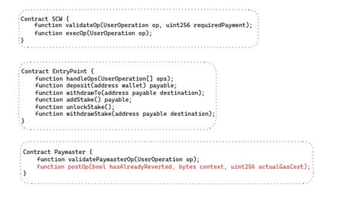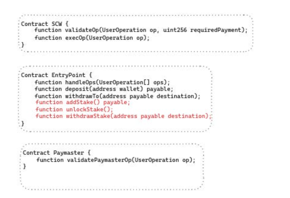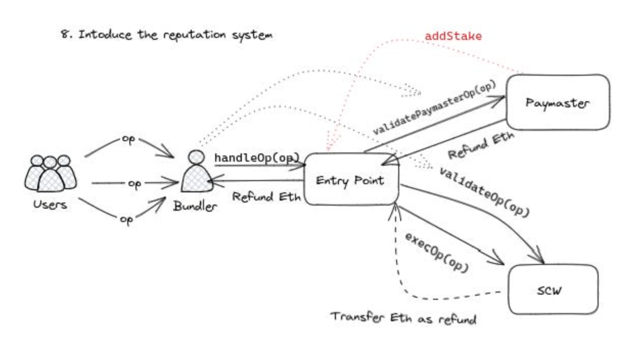 However, since the Paymaster contract is a shared storage space, even a valid op can be invalidated by a previous doom op, so we can prevent some DoS attacks by introducing an on-chain reputation system, i.e. each paymaster must stake at EntryPoint.