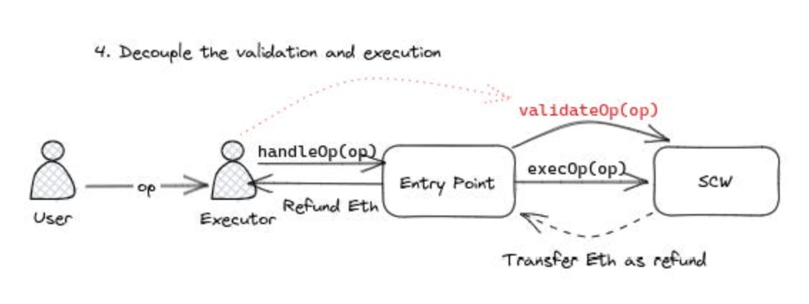 We can ensure that the rights of the Executor are not compromised by introducing a trusted smart contract, EntryPoint, so that the refund process is handled by EntryPoint, which requires SCW to make a deposit in advance to ensure the success of the refund.